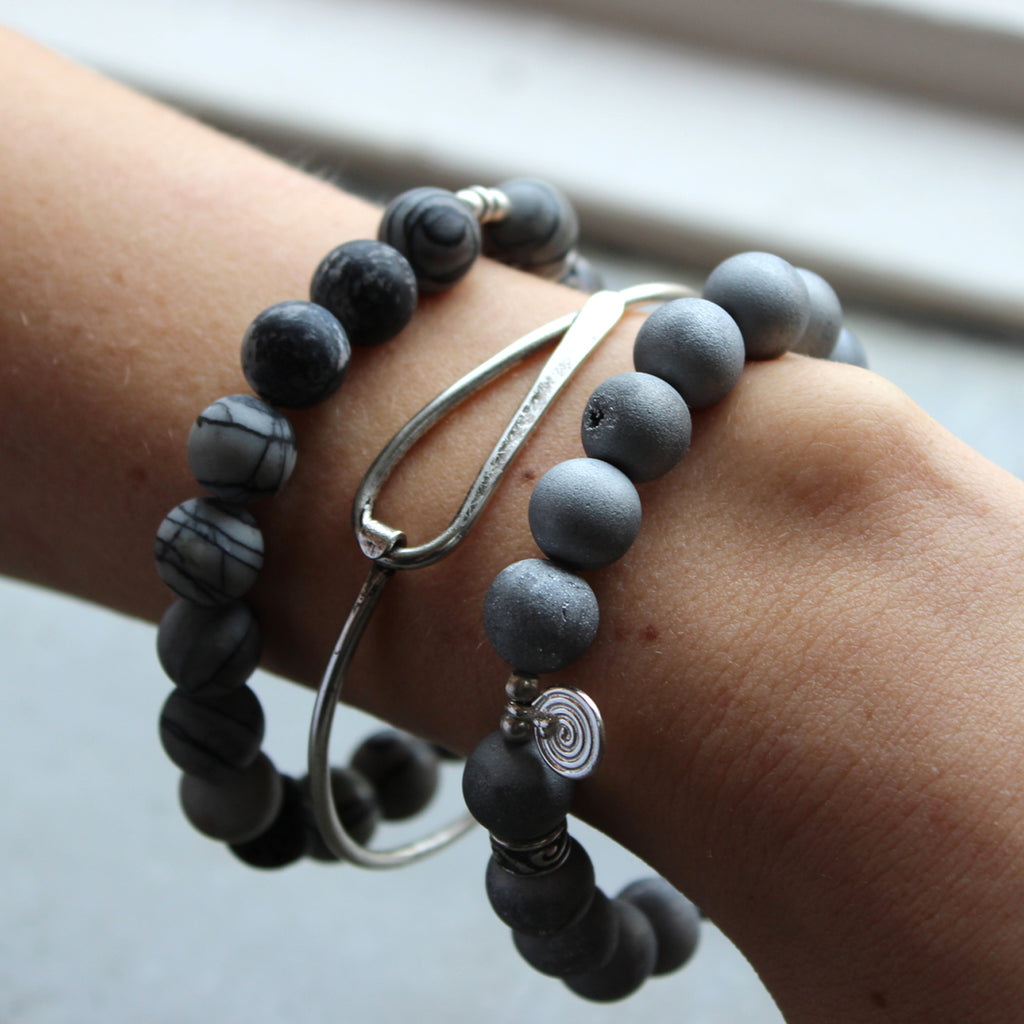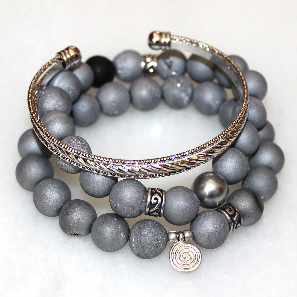 The gray druzy is a wonderful neutral bead. The bracelet is wonderful for stacking or can be worn alone. The druzy beads are just wonderful arm candy. Click here to learn more about druzy. Each bracelet comes with a journey of life description card.