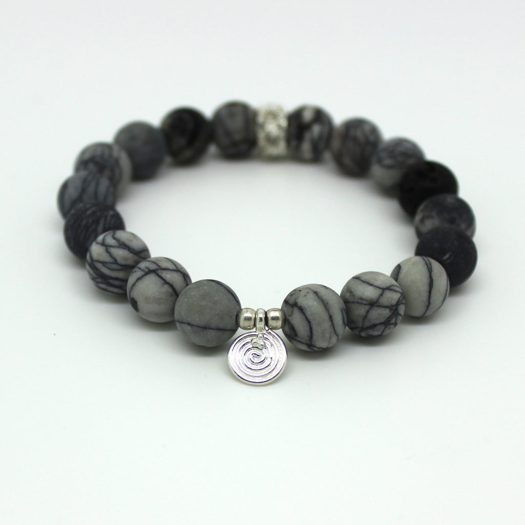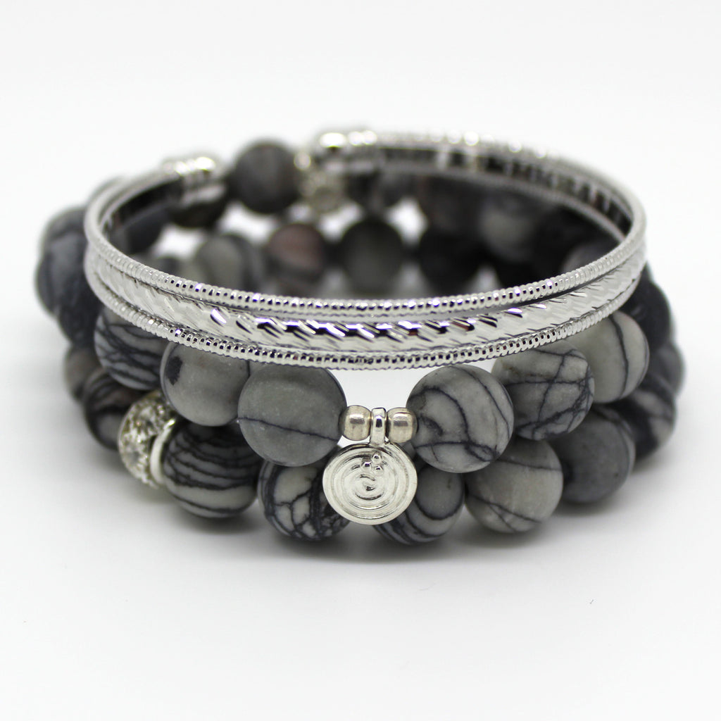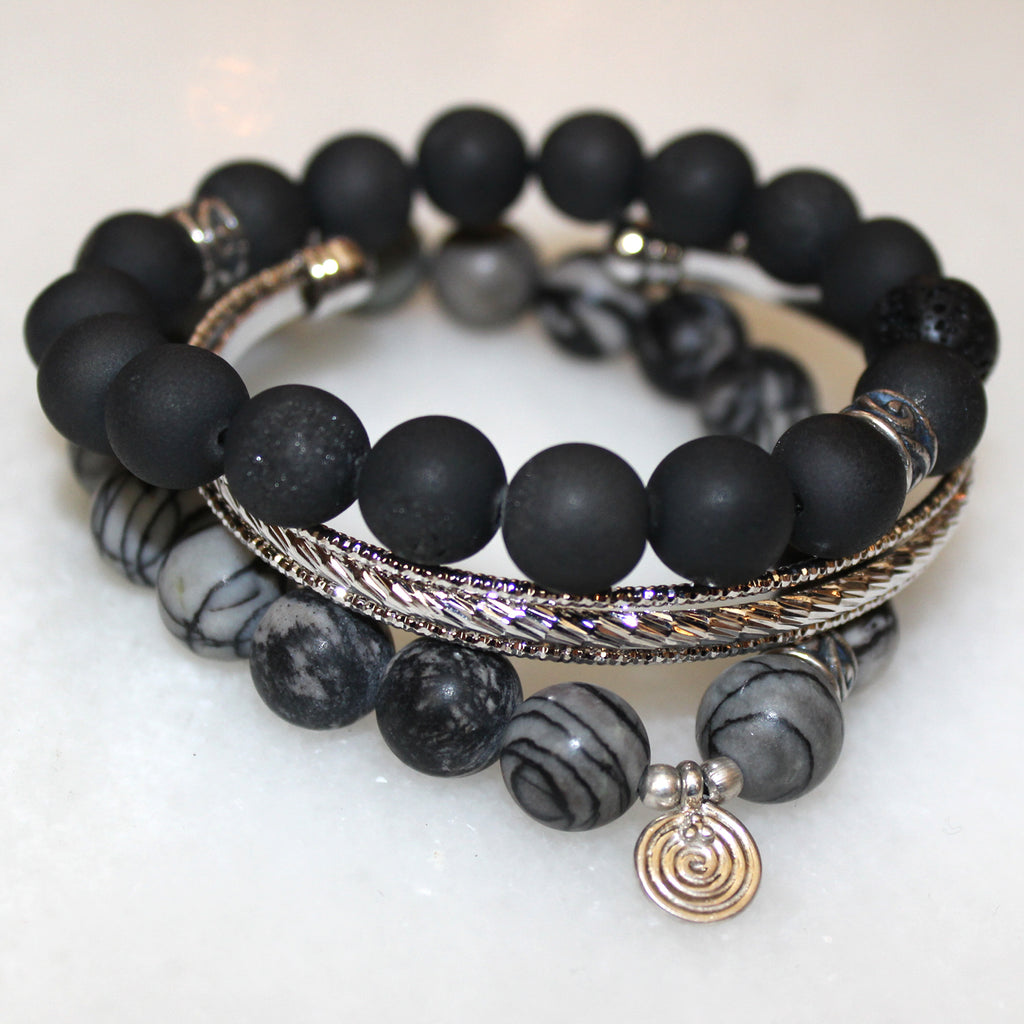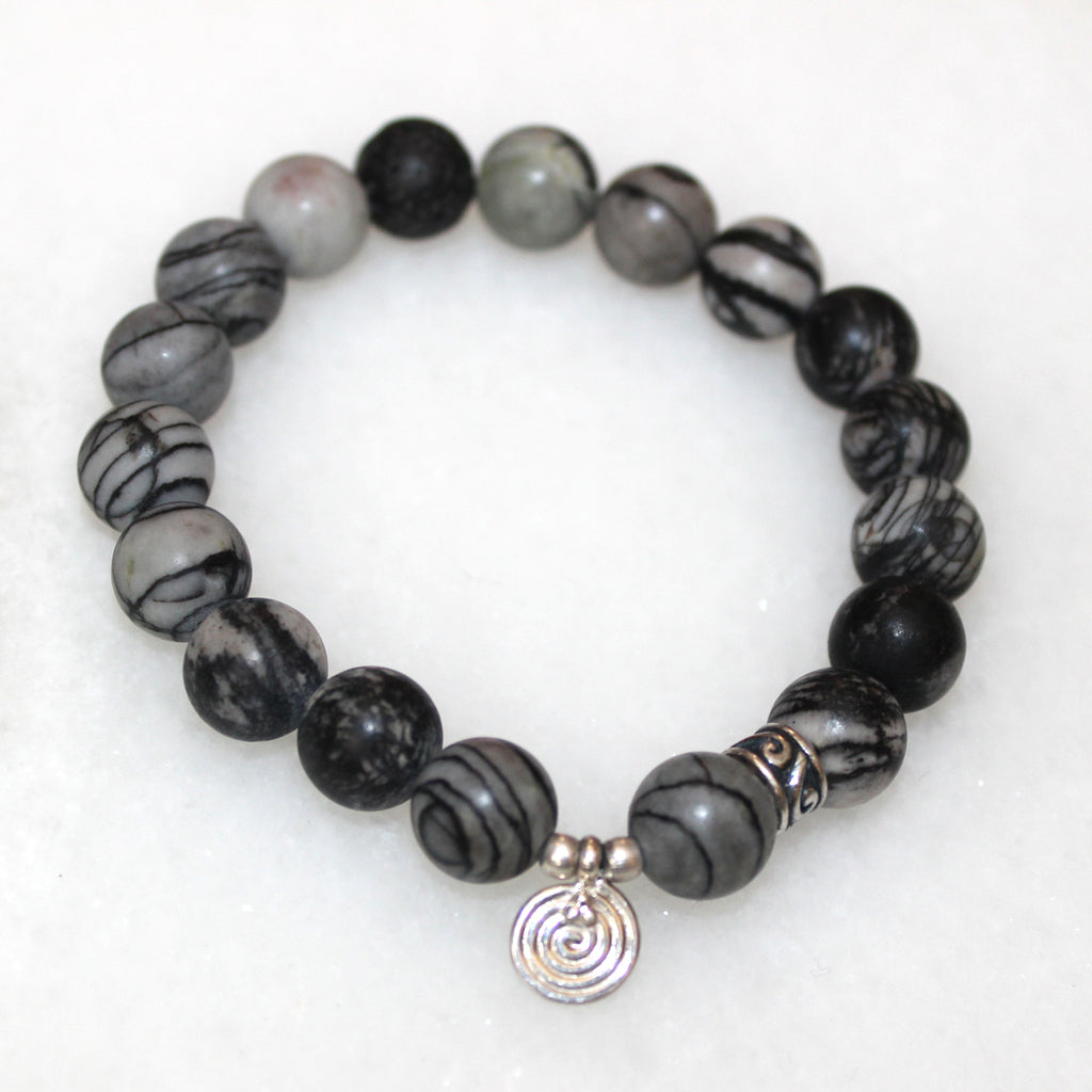 Can be worn alone or perfect for stacking. The black/ gray tones of the beads will be a little different in each bracelet, making each Cathi bracelet one of a kind. Each bracelet comes with a journey of life description card.