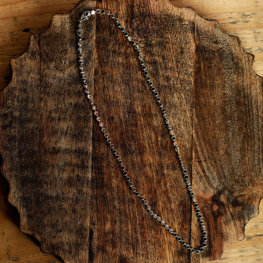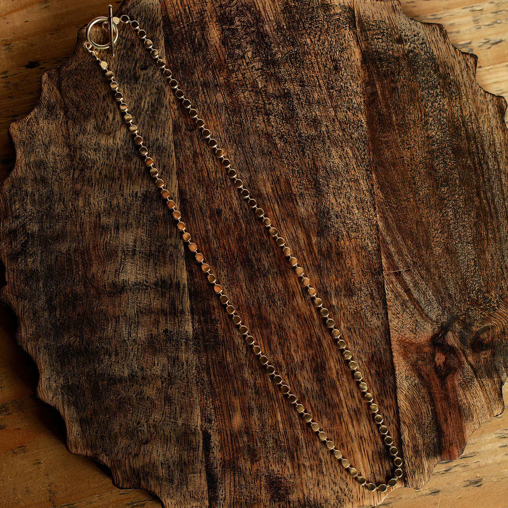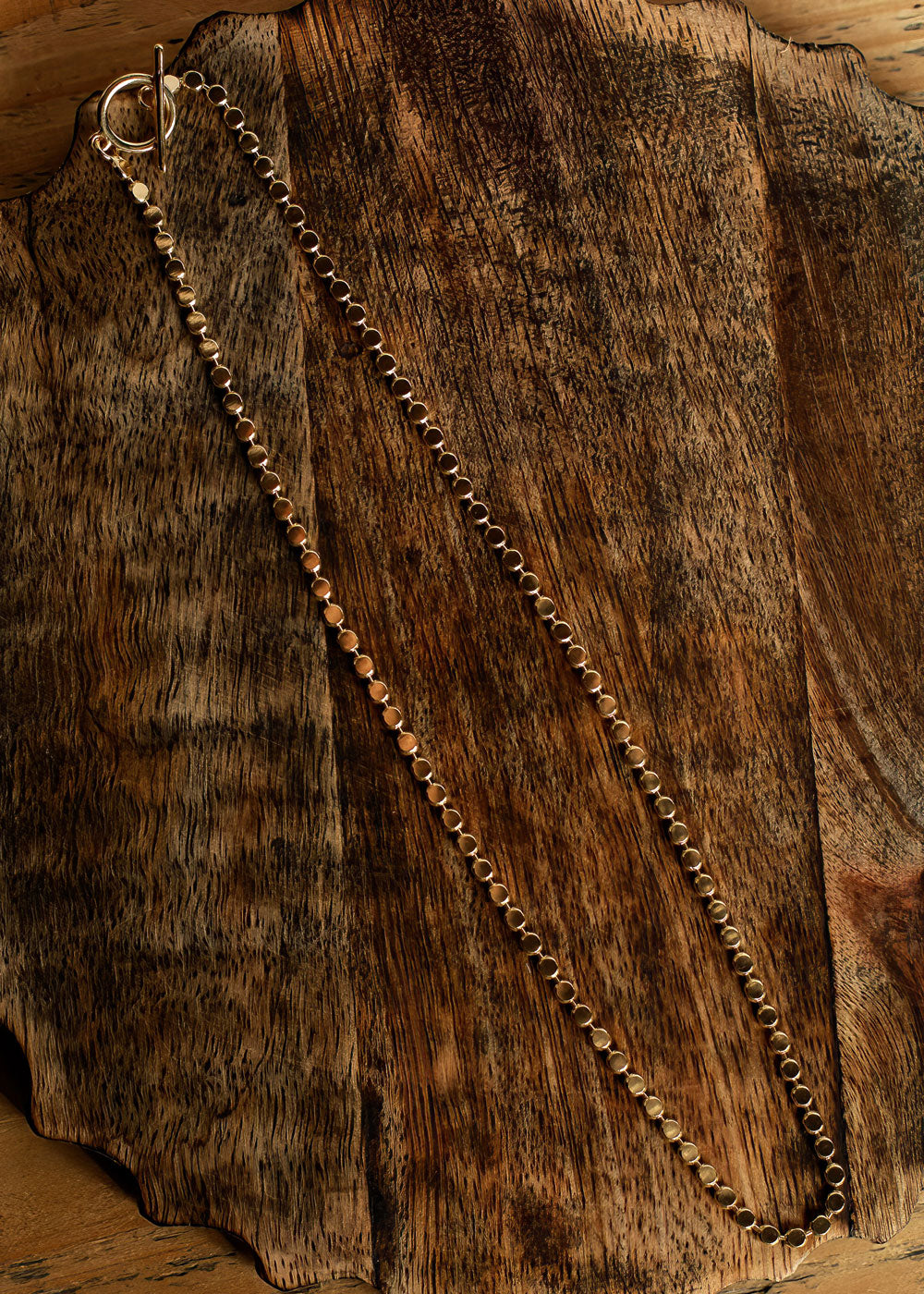 Delicate and effortless, this flat bead necklace transitions seamlessly from solo statement to layered styling. Its featherlight construction ensures all-day comfort, making it the kind of piece you'll reach for again and again without a second thought.