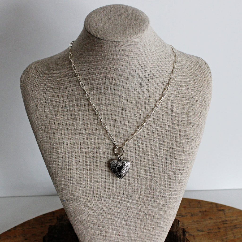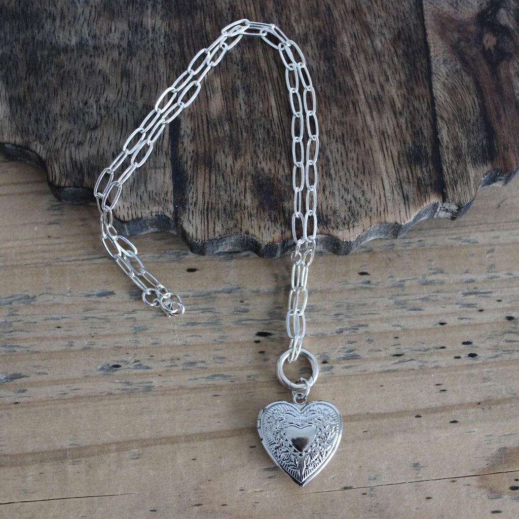 Preserve cherished memories within this elegant heart locket, designed to hold photographs, pressed flowers, or other meaningful keepsakes. The embossed detailing adds refined sophistication to this timeless accessory, making it an ideal gift for marking life's most precious moments.