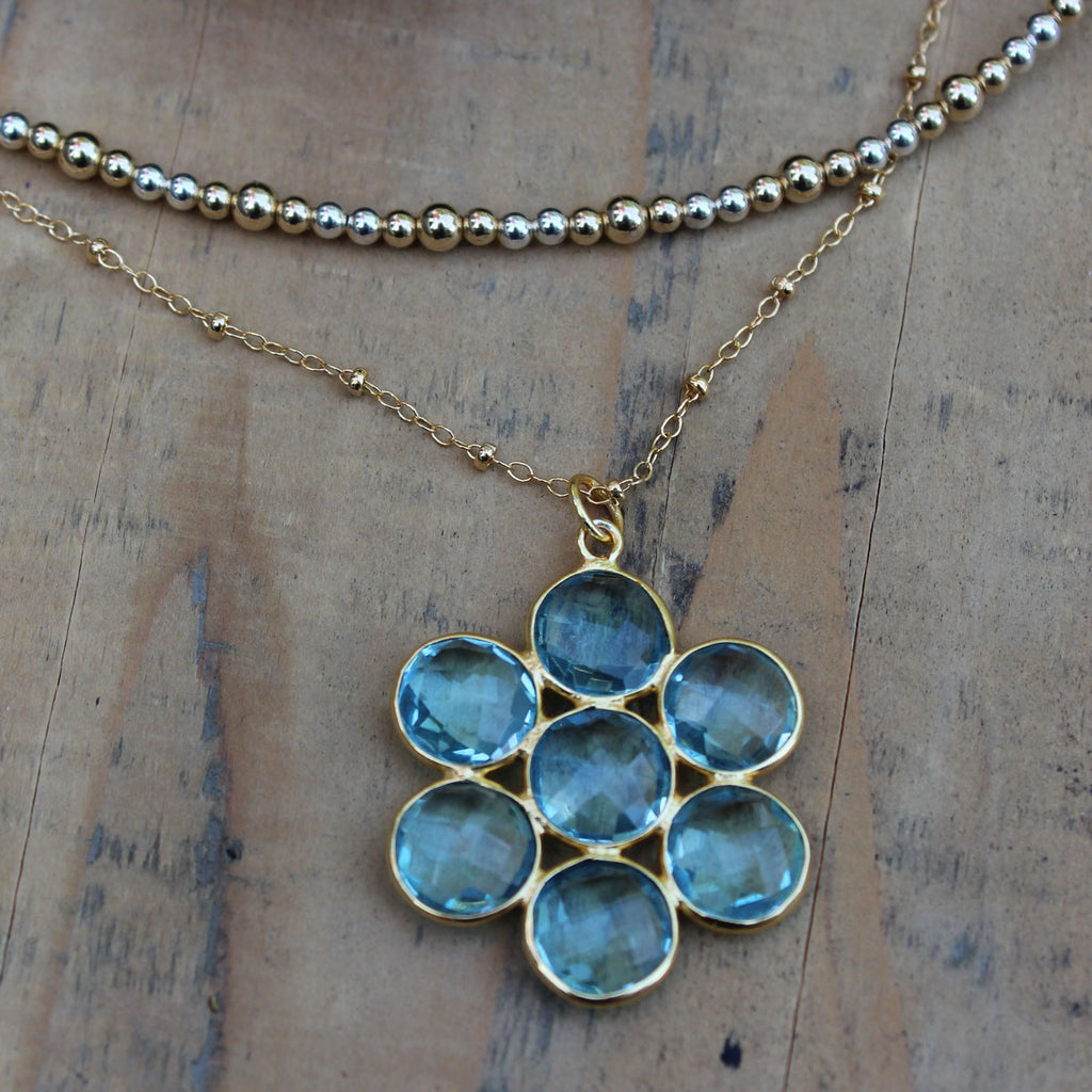 Blue Topaz Flower Necklace