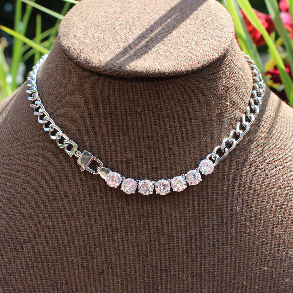 The Lock Tennis Necklace stands out with its chic design and exceptional style. It features high-quality CZ crystals that add a refined sparkle.